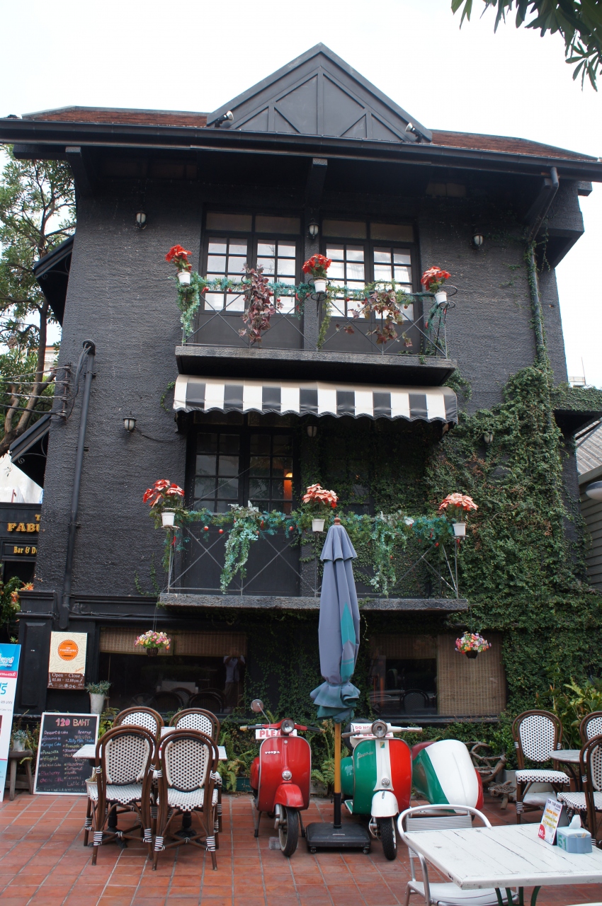 - カオサン通りから一歩入った路地の奥にありますが、小さい広場のようなスペースに数件の店が並んでいます。昼間より夜の方が楽しそうです。