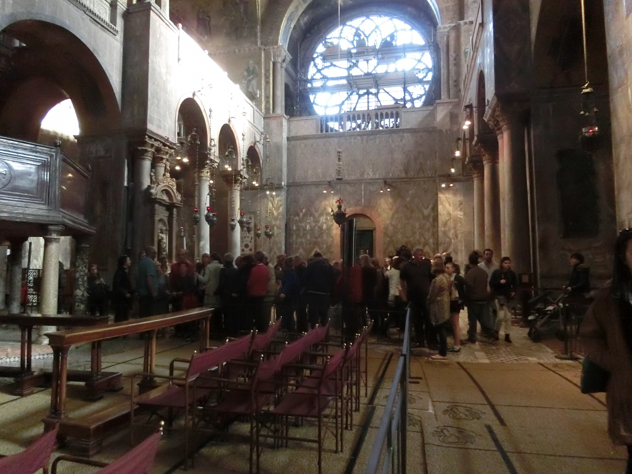 リュックなど大きな荷物を持っていると中に入れないサンマルコ寺院