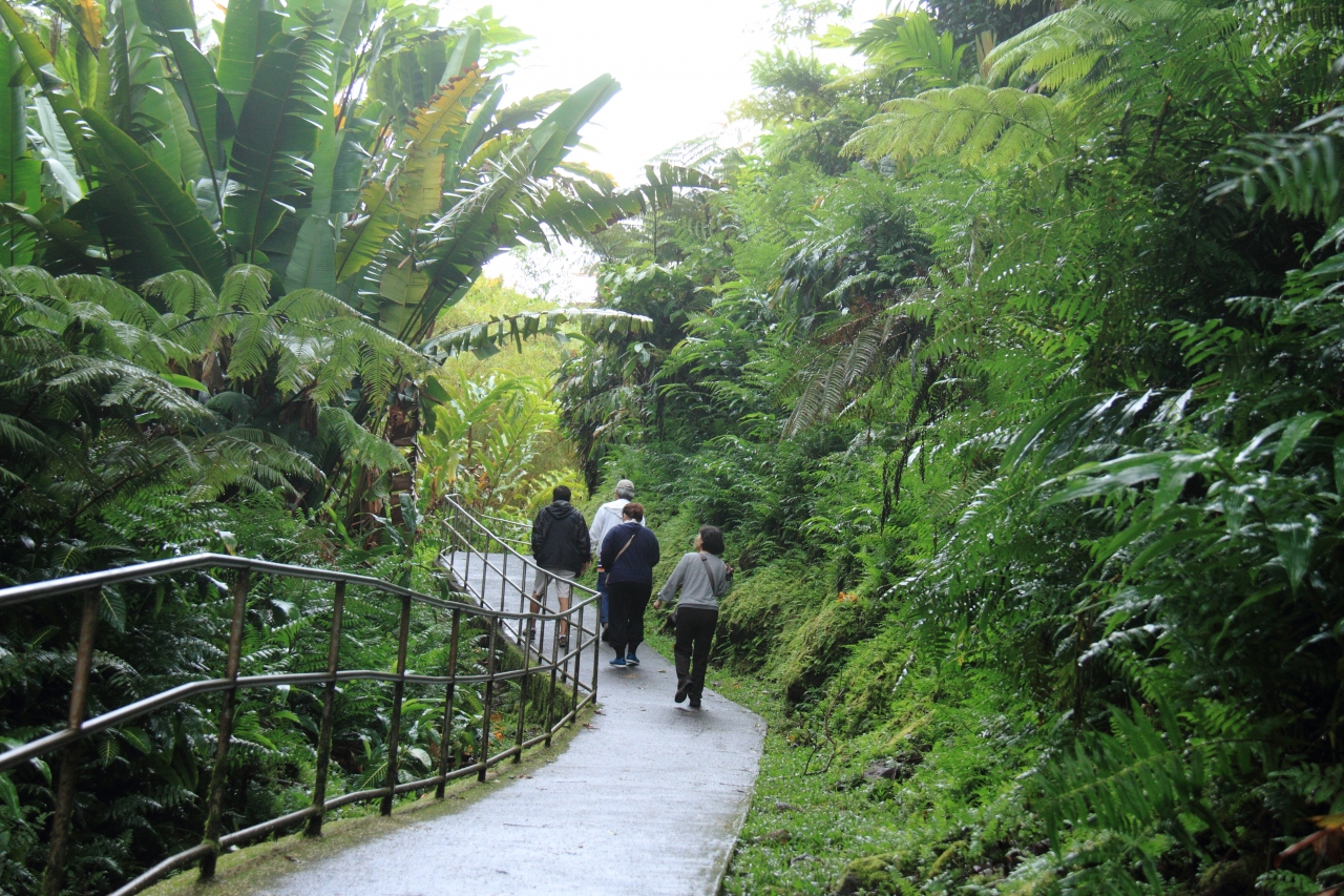 駐車場からうっそうと茂った南国の木々の中を歩いて約10分、アカカの滝に到着です。