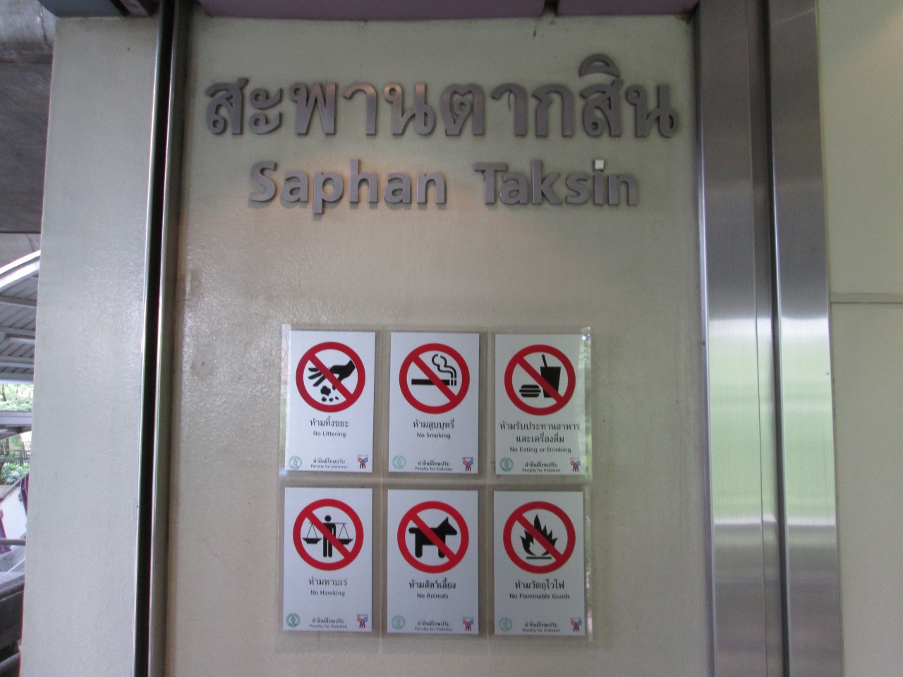 チャオプラヤー川にかかるタクシン橋のそばにある駅です。降車するとチャオプラヤー・エクスプレスの船着き場があり、チャオプラヤー川が駅の下にも通っていますが、川が汚いので処理用の大きいスクリーンがあります。