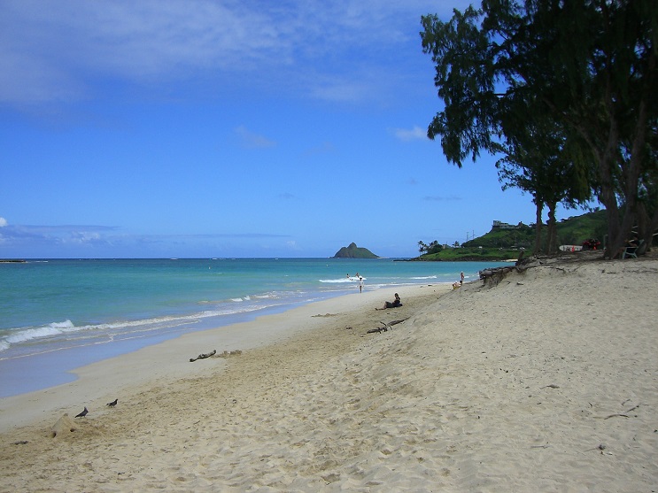 (ハワイ) 白砂とエメラルドグリーンの海がよく似合う「カイルア・ビーチ」。(2014)