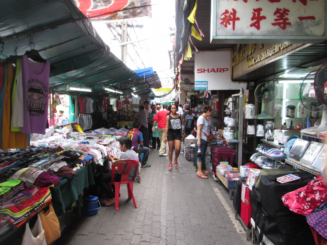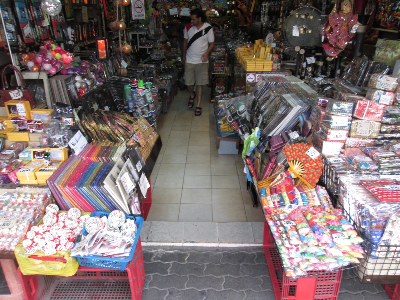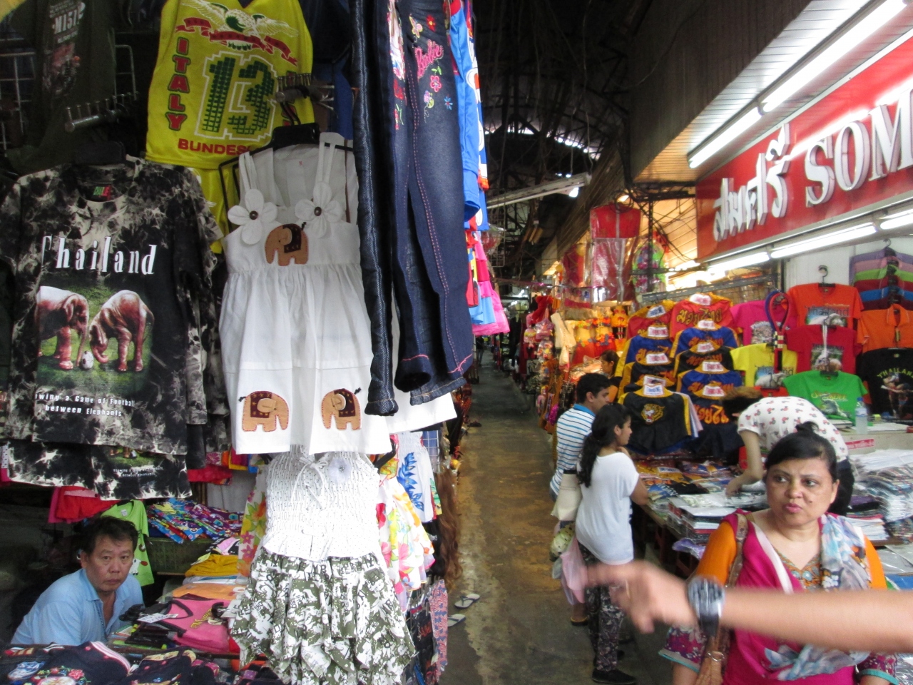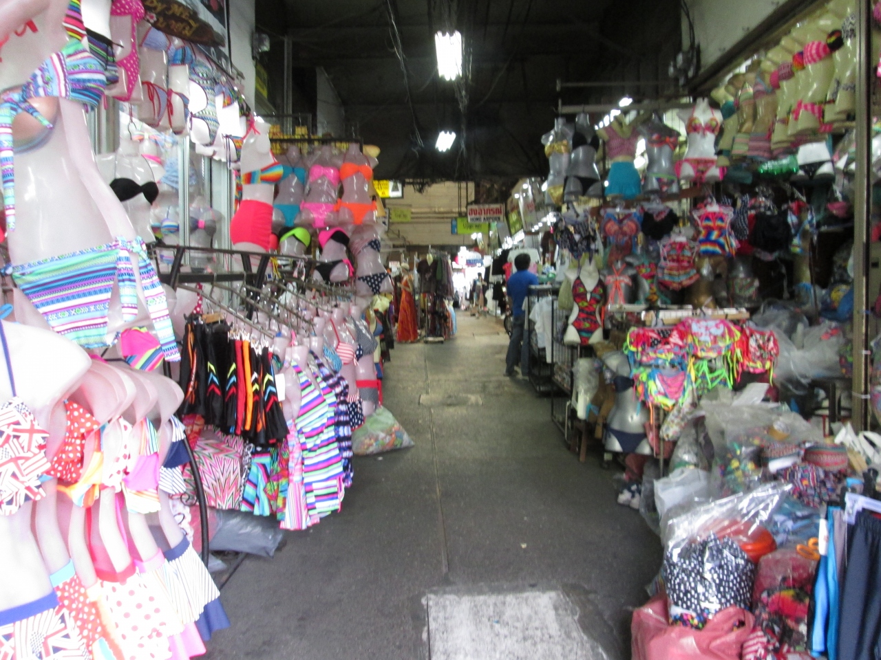 ラチャダムリ通りを北上するとアーケード街になっている一角です。市場には服、バッグ、雑貨、アクセサリー、コスメ、食料品などを中心にたくさんの商品が並べられています。メイン通りから路地に入ると迷路のようになっており、場所が分からなくなってしまいます。