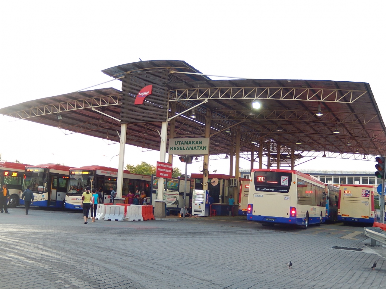 ジョ−ジタウン市内には「Jetty」と記載されたバスがひっきりなしに走っている。「Jetty」というのがジェッティーバスターミナルのことで、コムターが始発のバスはなく、ほとんどのバスがここを発着地点としている。無料のCATバスはこのターミナル前のウェルド通りに発着して、このターミナル内には入らないのでご注意を。対岸のバタワースに行くフェリーターミナルはここからすぐで、ターミナル横の小さな店が並ぶアーケードを道なりにゆるやかな坂をのぼっていくと乗船口がある。
