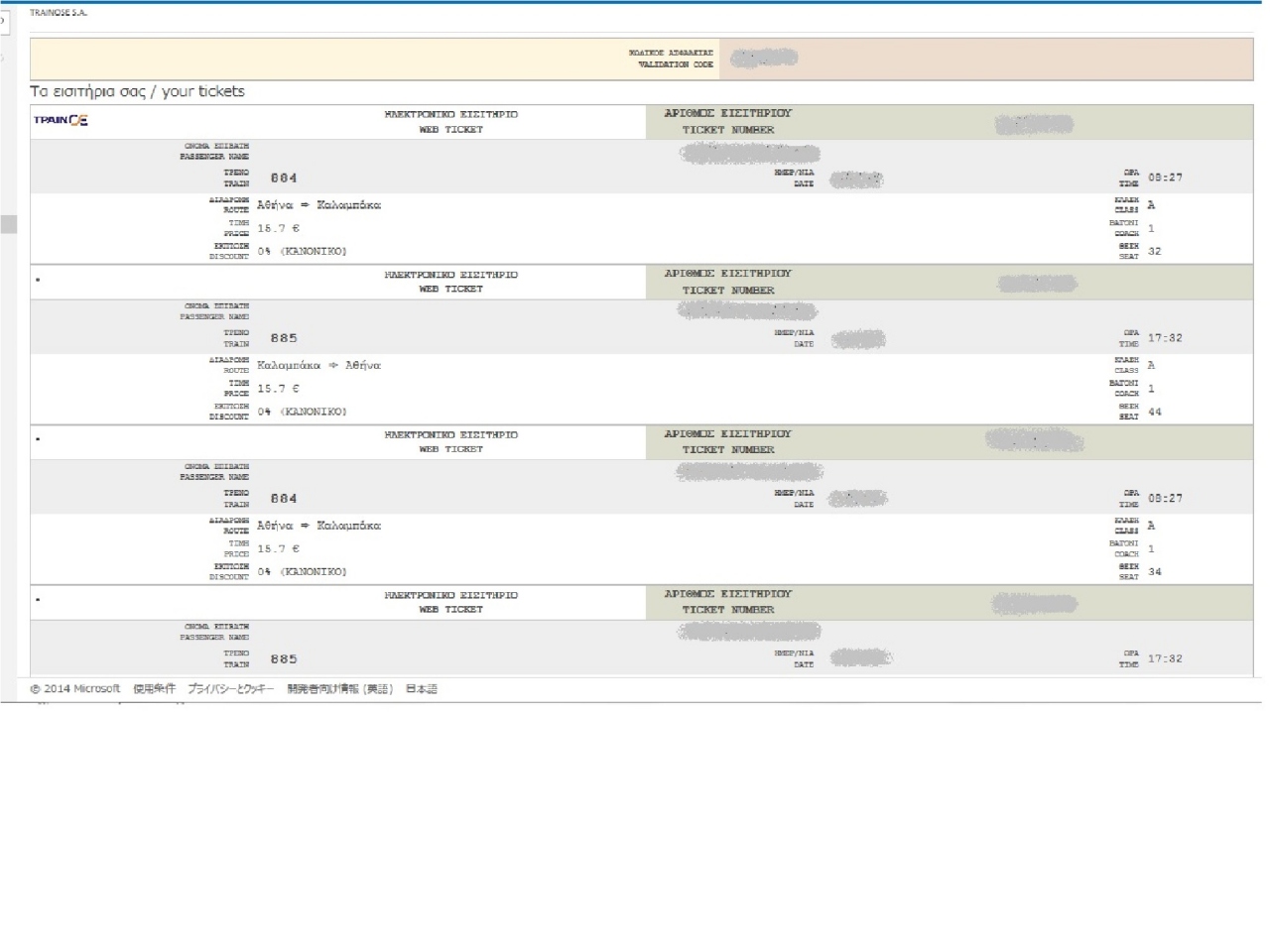ギリシャの鉄道HPから 旅行の約2ヶ月前から予約可能。