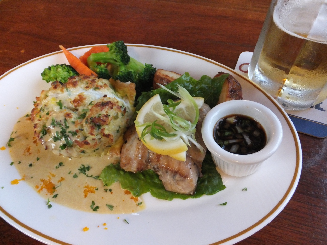 味も良いと思います。観光地値段と思いきや「クラブケーキ&カジキマグロ」で15ドル。特別、値段が高いとは思いませんでした。