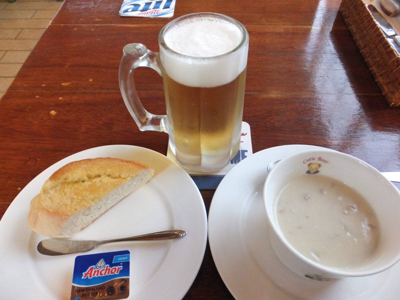 メイン料理に5ドル足すと、パン、サラダ、スープ(クラムチャウダー)が出てきます。正直、量が多くて食べ切れませんでした。その場合はドギーバッグをもらって持ち帰りましょう。