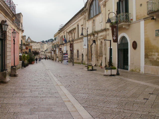 マテーラと言えばサッシ(洞窟住居)しか思い浮かびませんが、駅前は現代の建築物が立ち並び、拍子抜けするかも知れません。そして駅から観光場所に向かって歩くと、サッシの周りには中世建築物が現存しています。その中世の町から眺める古代(?)のサッシ。進むにつれて風景が変化する事が楽しかったです。