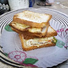 時計塔の北門の脇にあります。結構な歴史のある有名店らしく海外やデリーの新聞で紹介された記事の切り抜きが飾ってあります。メニューは多彩でPlain Omelette(30Rs~)からあります。オムレツと言ってもパンに挟まれて出てきます。私は店主おススメのMasala Cheeseをオーダー。目の前で作ってくれます。マサラ味はさほど強くなく、自家製マヨネーズとチーズのとろけ加減がなかなかイケました。最後にノートを出されコメントを書かされました。