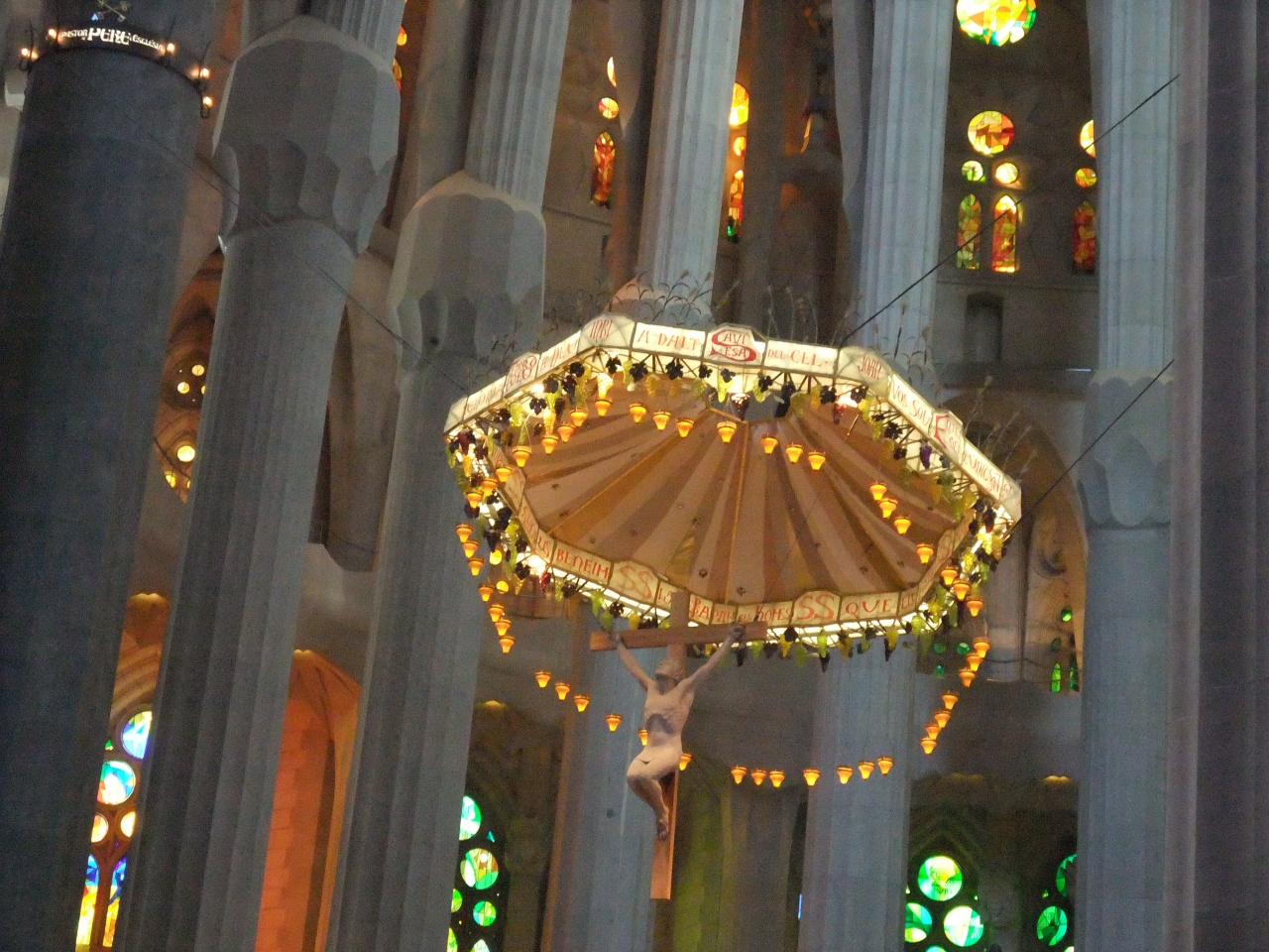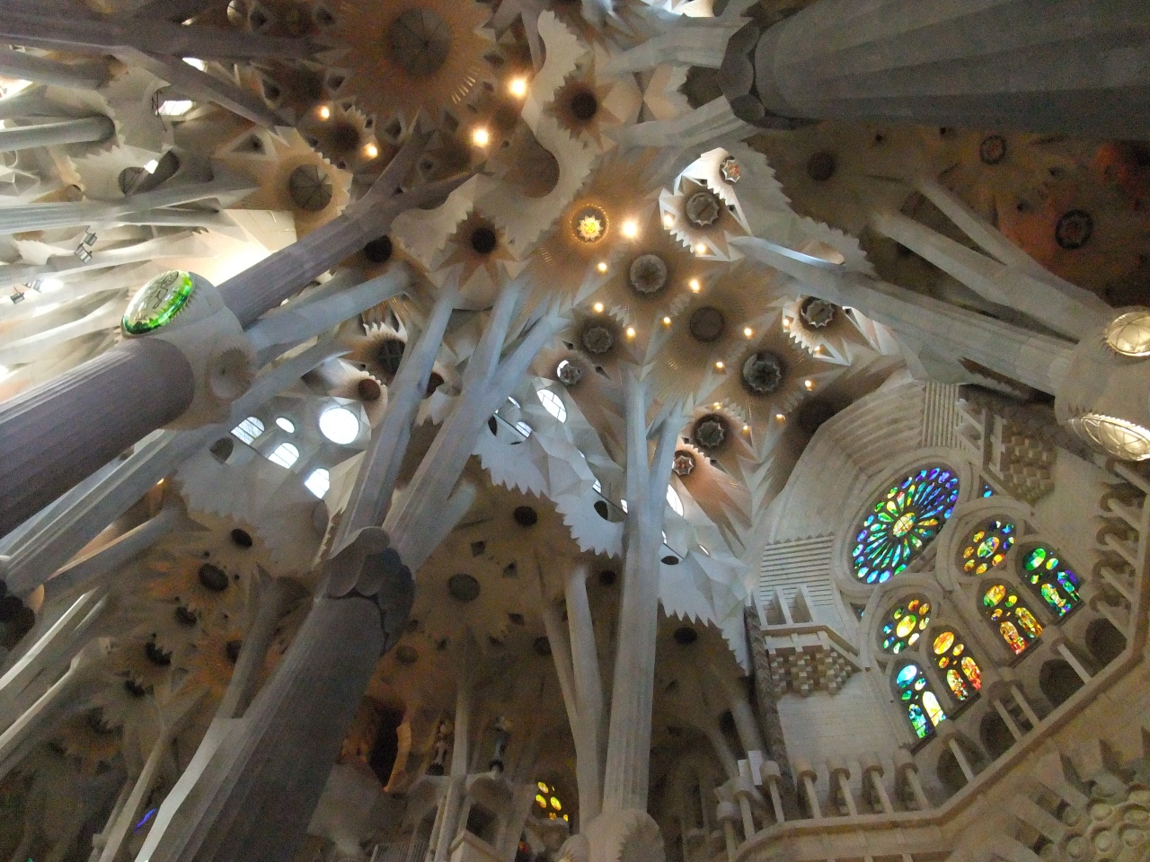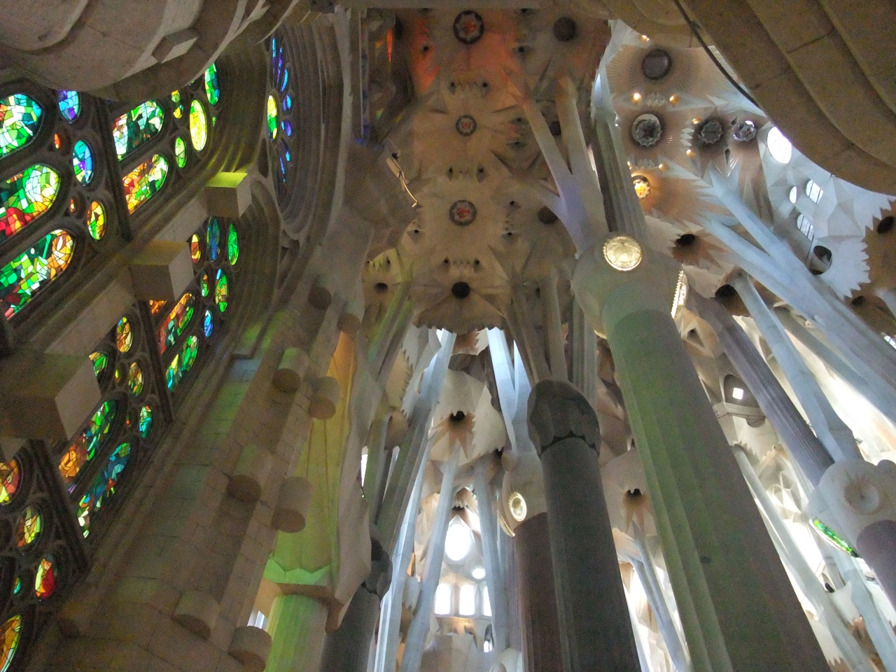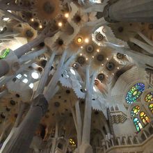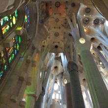 サグラダ・ファミリアの聖堂内部は、枝分かれをした木を表現した柱と、木のこぶを表現したガラス玉と、葉っぱに見立てた天井など、全体で森の中にいるような錯覚に陥ります。たくさんのステンドグラスから注ぐ光は木漏れ日のようで、とても幻想的な空間でした。