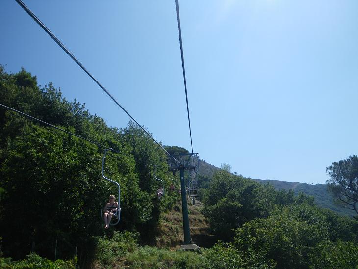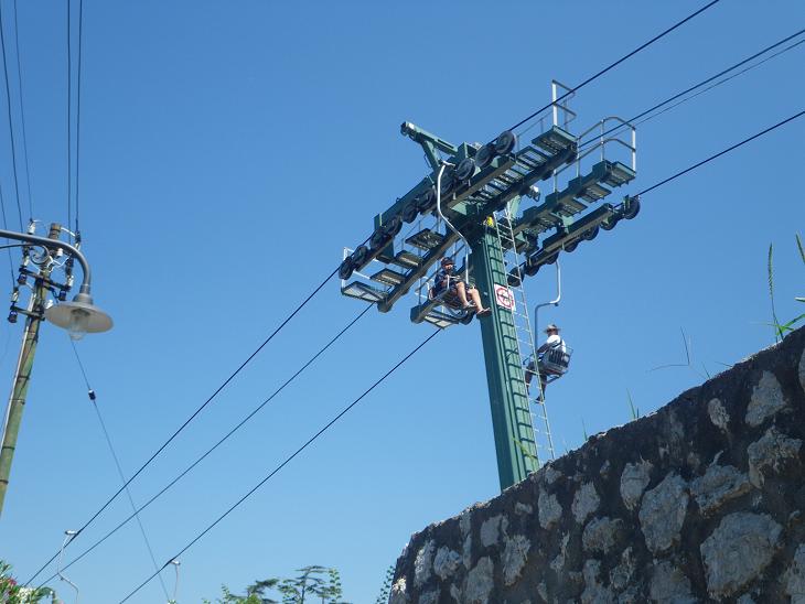 モンテ・ソラーロへリフトで登りました。リフトは1人乗りです。地面からだいぶ離れたところを移動したりしますので、高所が苦手な場合はちょっと大変かもしれませんが、そうでなければ気分爽快。天気が良ければ絶景です。