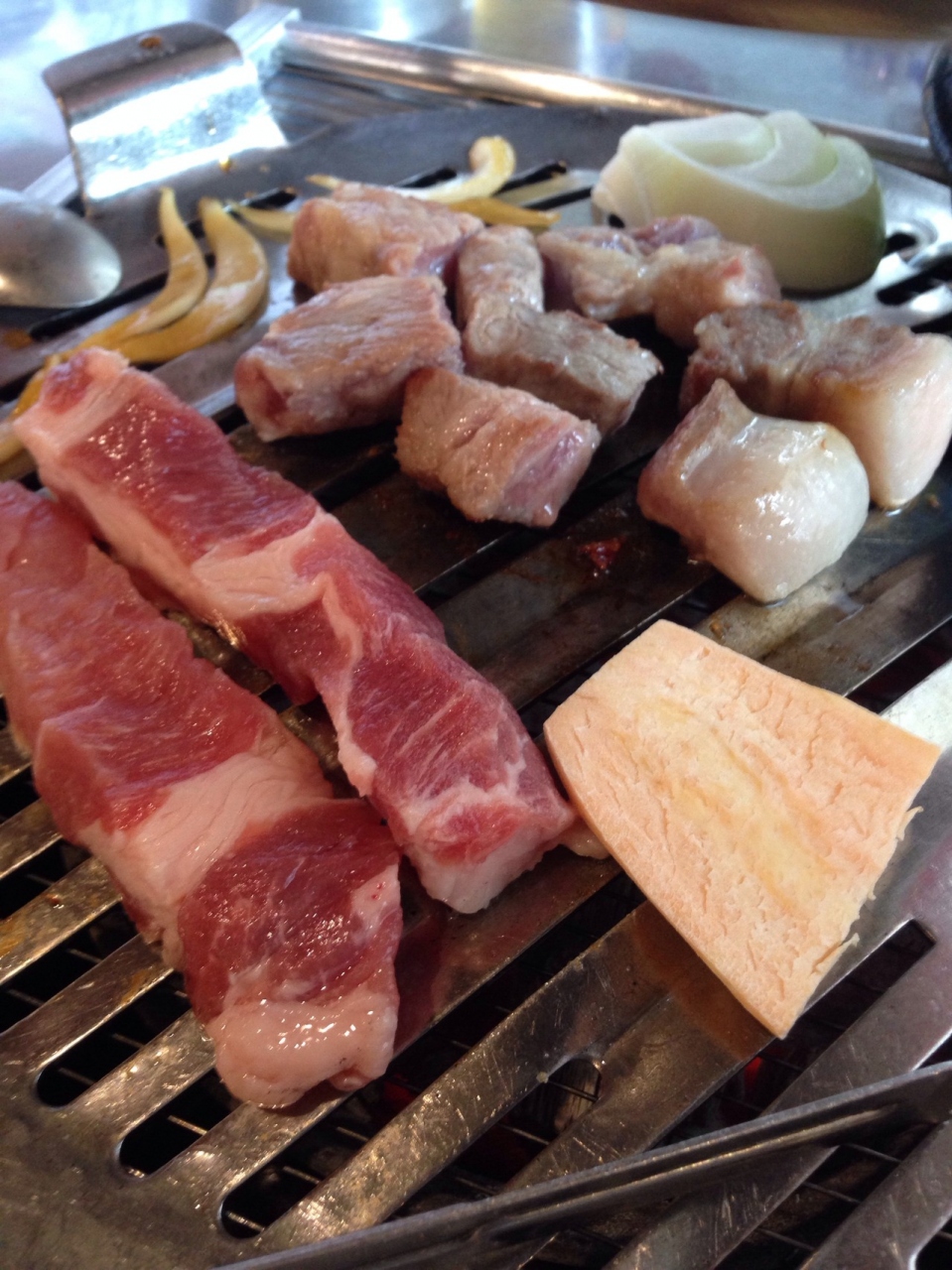 シンチョン駅からもホンデイック駅からも歩いて10分程の位置にある店です。広い店内で牛肉も豚肉も美味しいです。肉を注文したら出てくる味噌チゲが美味しくて一緒に行った友人たちはたいてい完食しています。私は一人でよく利用しています。