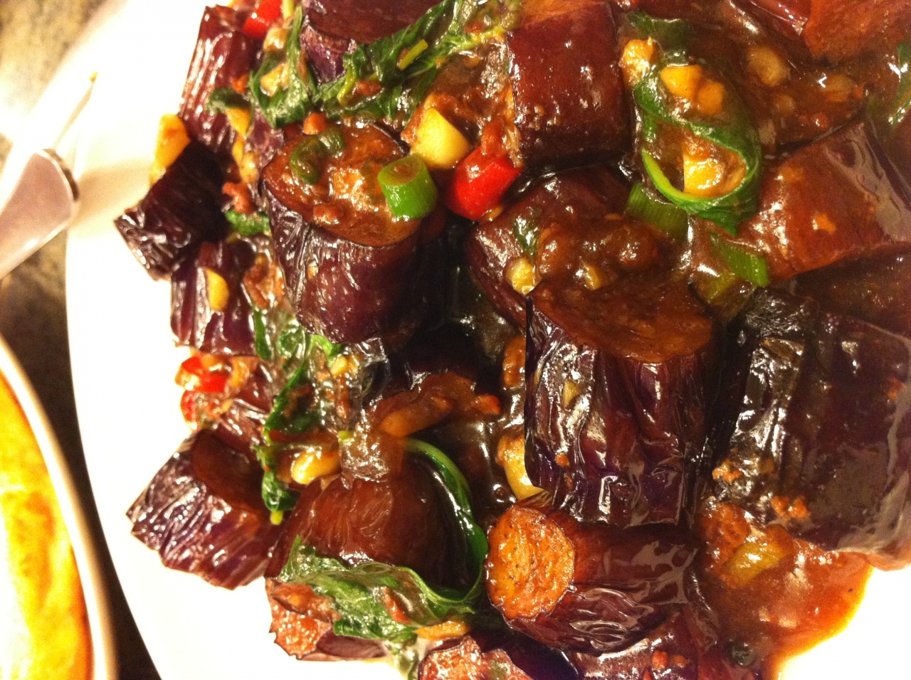 茄子の料理や海産物、菜っ葉の料理を注文しましたが