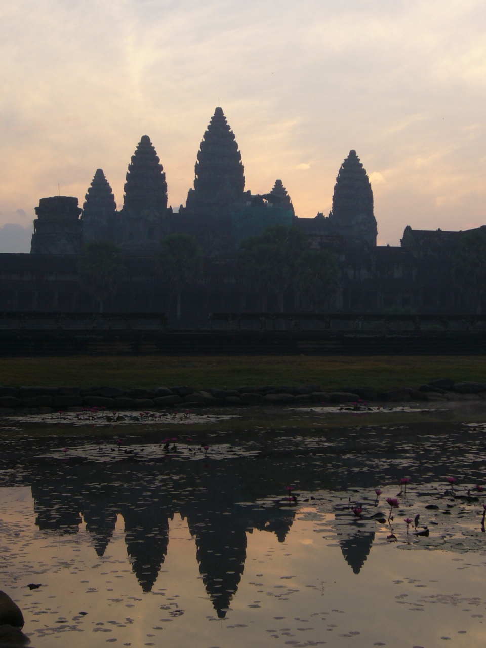 行く前は朝日の中のアンコールワットを楽しみにしていましたが、うっすら雲があったせいで丸い太陽ではなく全体的に明るくなってしまい、それほどでもなかったです。