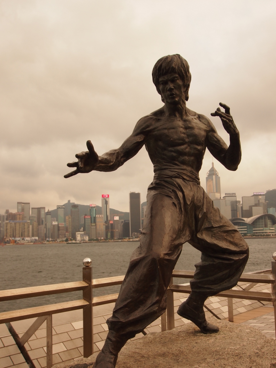 香港は九龍のベイエリアに位置するアヴェニューオヴスターズ。ジャッキーチェンやブルースリーの手形、さらにはブルースリーの銅像がお出迎え。対岸に香港島の高層ビルが見えるため景色がとてもいい。夕方行くのがおすすめ。