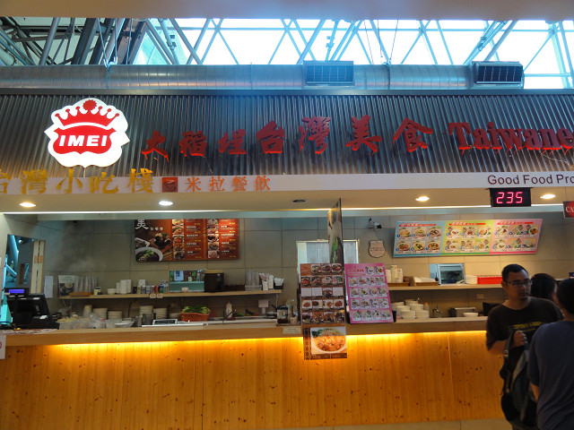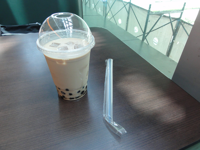 台湾最後の食べ物はタピオカミルクティーでした。フードコートの一番奥にあるお店はタピオカドリンクの他に、粽、肉まんや鶏肉飯、豚角煮飯、チャーハン、焼き餃子、チャーシュー麺や海鮮うどん、肉入りとろみ麺、かぼちゃとビーフンの炒め物等メニューもいろいろありました。大粒のタピオカは歯ごたえも良かったです。