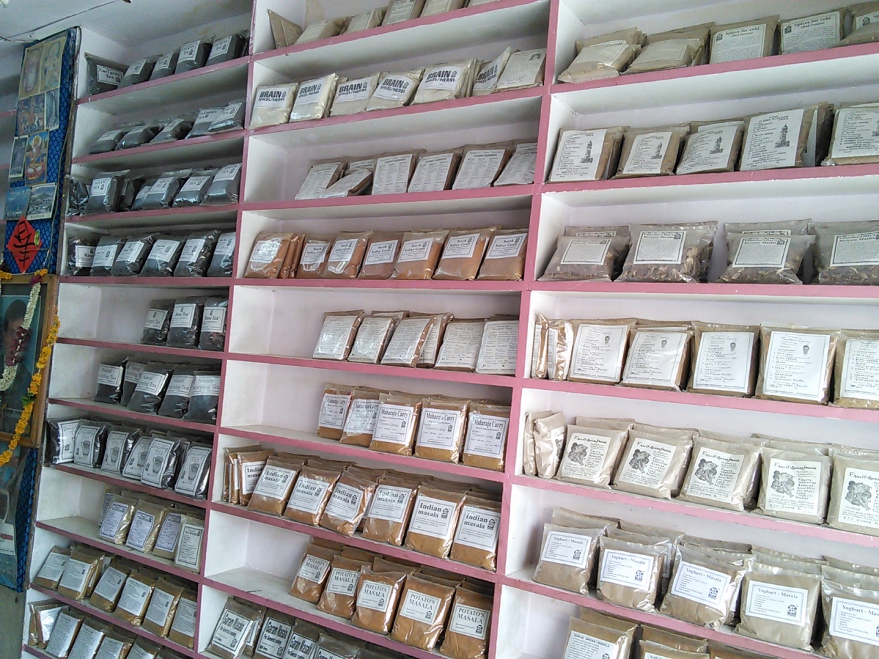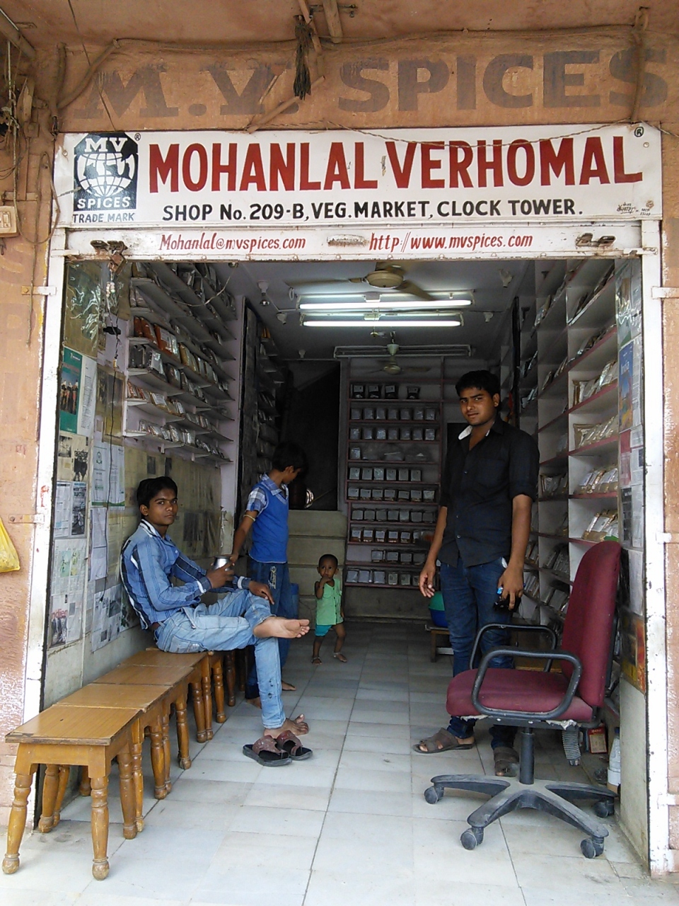 地図にある店以外にも時計塔の野菜市場向かいとNai Sarak通りともうひとつ、計4店舗あります。 地図の店が改装中だったので時計塔の店にいきました。いろいろなガイドブックに紹介されたコピーや世界的に有名な某旅行Webサイトの賞状などが飾られています。一応それなりのお店のようです。店内は清潔でスパイスがひとつひとつパッケージされた状態で売られています。店の人も気さくで感じのいい人達でした。
