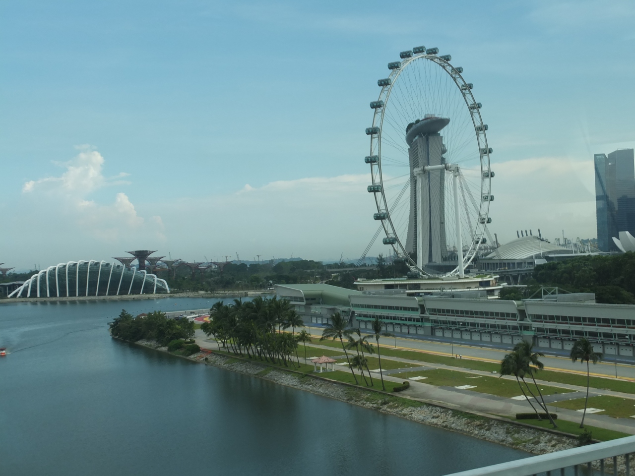 高さが165mなので,川を挟んで隣にある200mのマリーナベイ・サンズより少し低いですが,眺めは良いです。