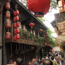 狭い通りに赤い提灯を下げた店が並び、不思議な雰囲気。土産物、食べ物など、店を除くだけでも楽しく、あっという間に時間が過ぎました。
