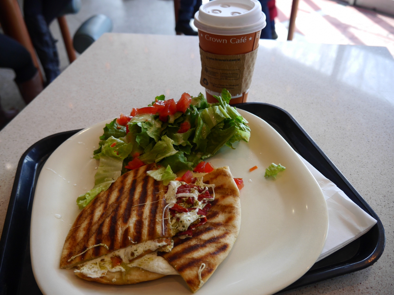 お腹が空いてたので、クラウンカフェでパニーニとホットチョコレートを頂きました。