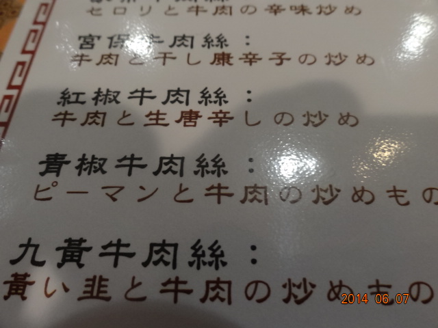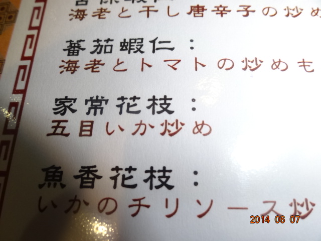 五目いイカ炒めとピーマンと牛肉の炒めもの2点を注文。