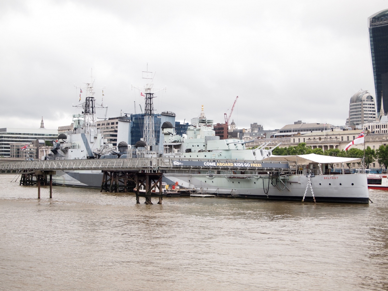 HMSベルファスト号はタワーブリッジとロンドンブリッジの間の