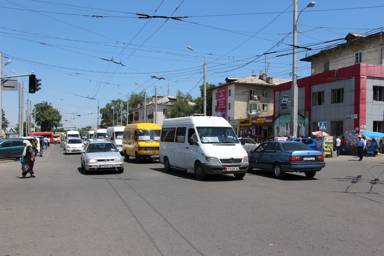 オシュバザールの南側一帯がマルシュルートカの発着所となっており、厳密にはバスターミナルではありません
