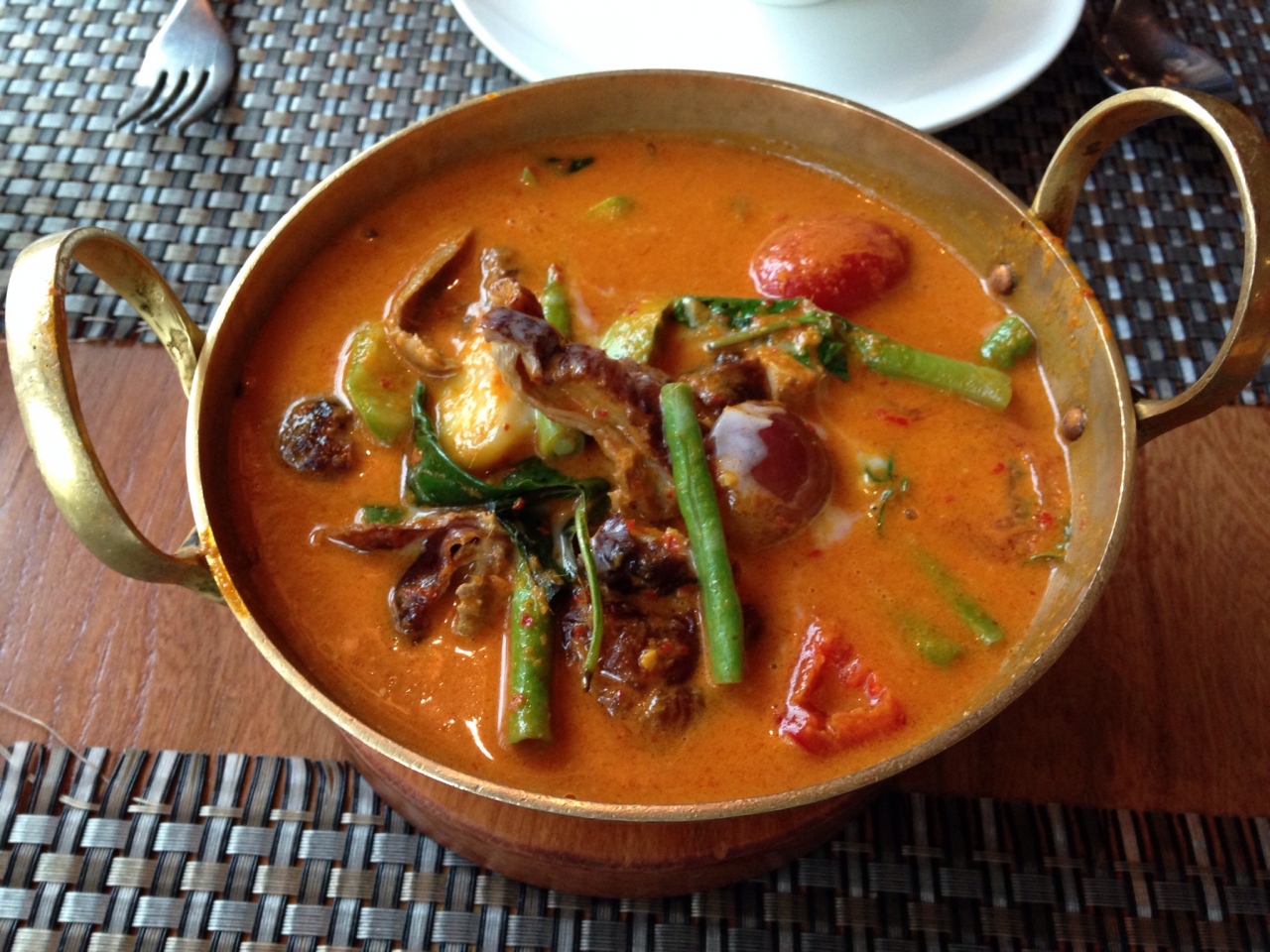 レッドカレーは見た目からしてかなり辛そう、食べてみるとやっぱり結構辛かった。友人は汗を流しながら食べていました。エビトーストは噂通り本当に美味しい。揚げてあるので食べごたえがありました。ドリンクもフローズンでさわやか~。満足でした。
