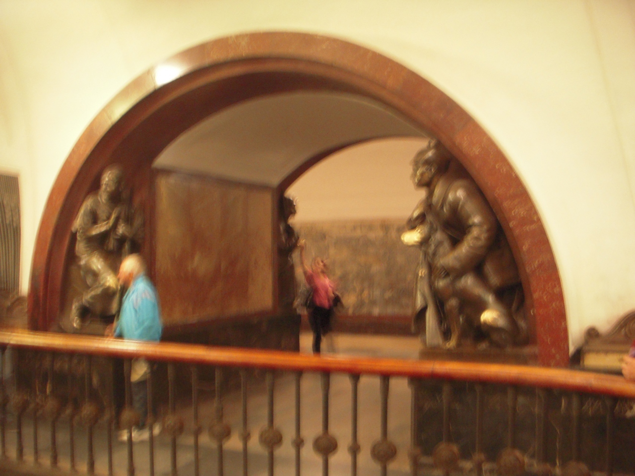 ガイドブックには、メトロ駅内部は撮影禁止となっていますが、今では解禁されたらしく、警備のお巡りさんがいる前で、観光客が盛んにフラッシュを焚いて写真を撮っていました。