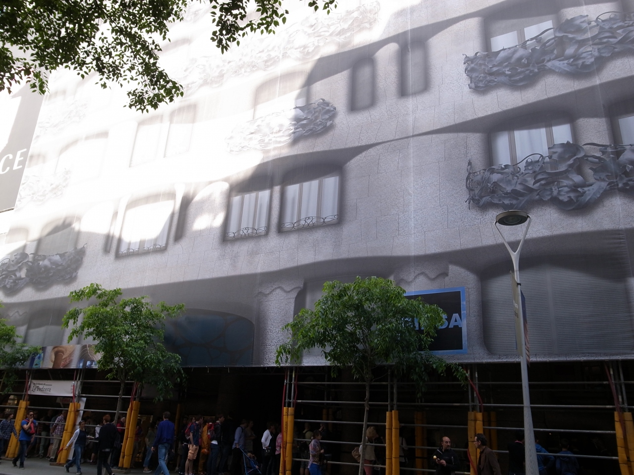 4月28日に訪問しましたが、カサ・ミラ外装は改修中でシートで覆われてました。残念!!