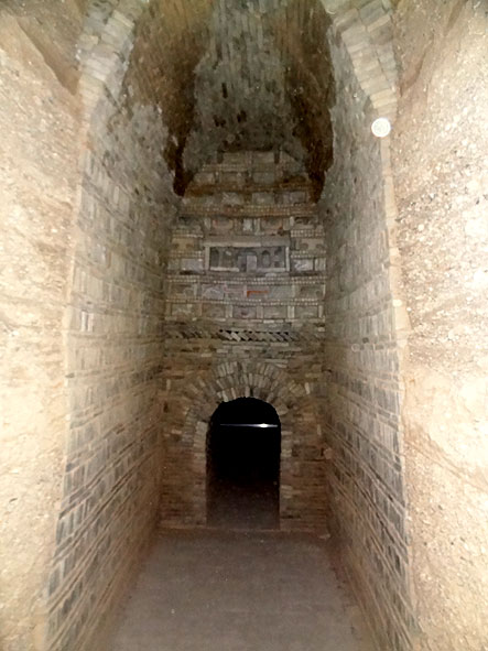 敦煌の郊外、現代の墓地の中に古代の地下式壁画墓がある。玄門には多くの画像磚が填め込まれ、神仙思想に基づいた画像が描かれている。玄室の構造は伝統的なドーム状の磚室で、奥壁には壁画が描かれている。玄室の天井石には蓮華文が描かれており、仏教の影響も認められる。玄室の両側に、小型の磚室があり、玄門から入って左側には台所の部屋、右側にはトイレの部屋がある。両側壁に側に、それぞれ1基ずつの木棺が置かれていたという。西晋時代3世紀頃のものと考えられている。