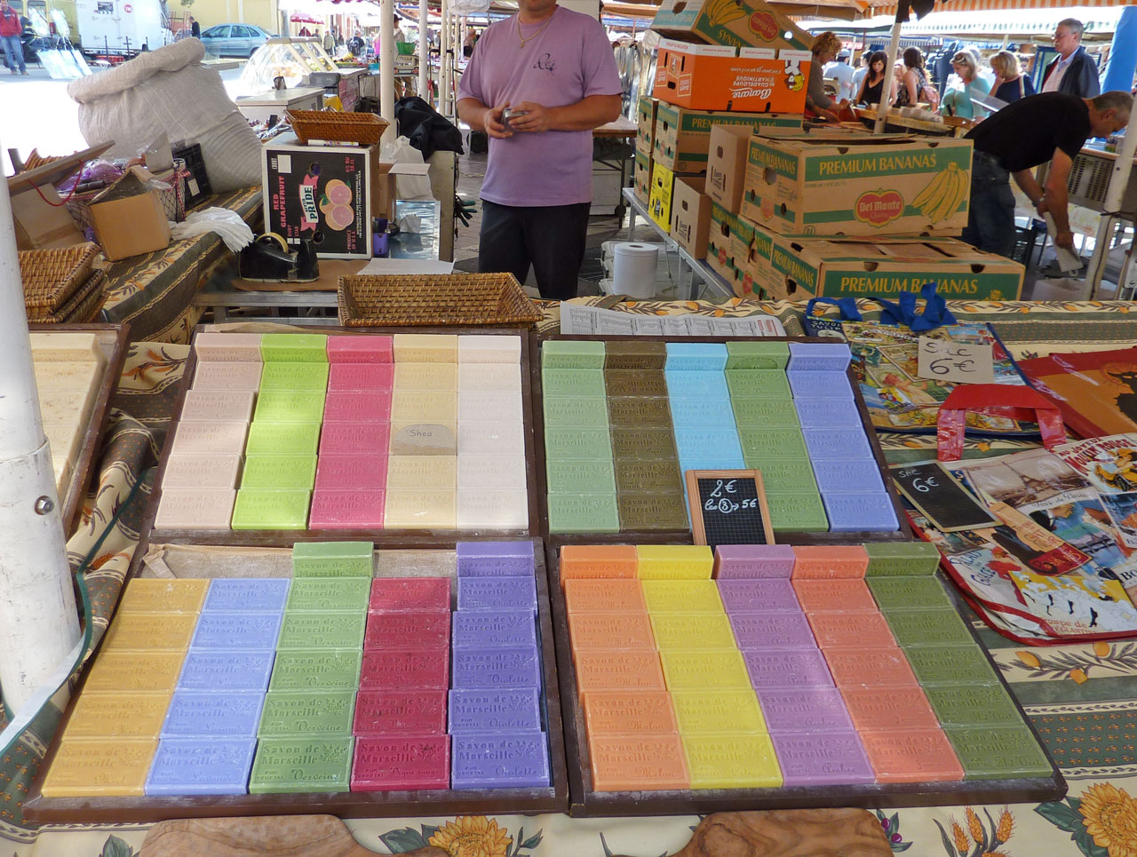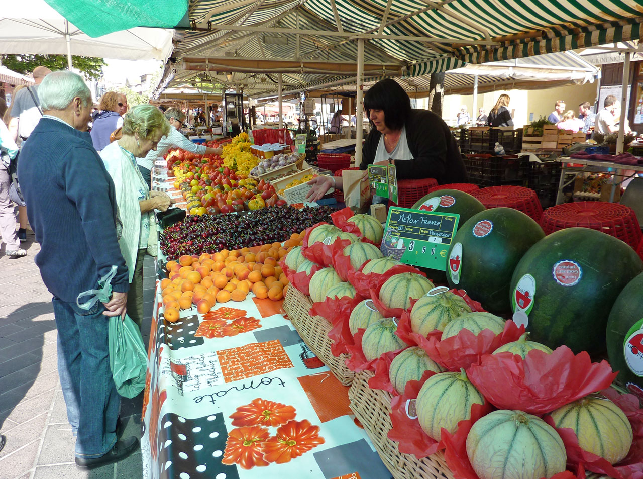 市場には赤、黄、緑とカラフルな商品が並べられており