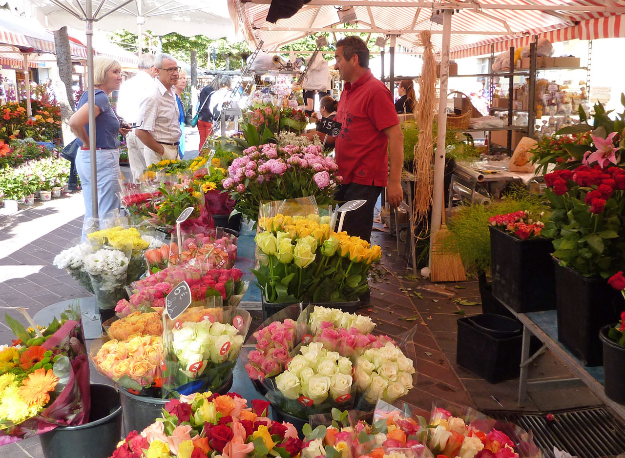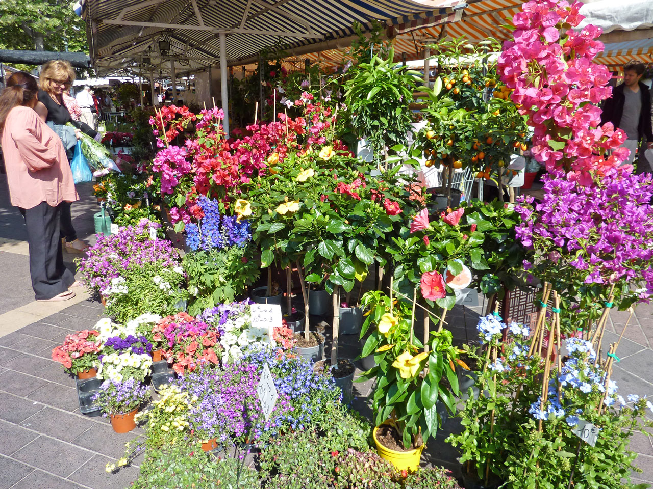カラフルな花、果物、特産品が並べられて格好の被写体です。