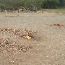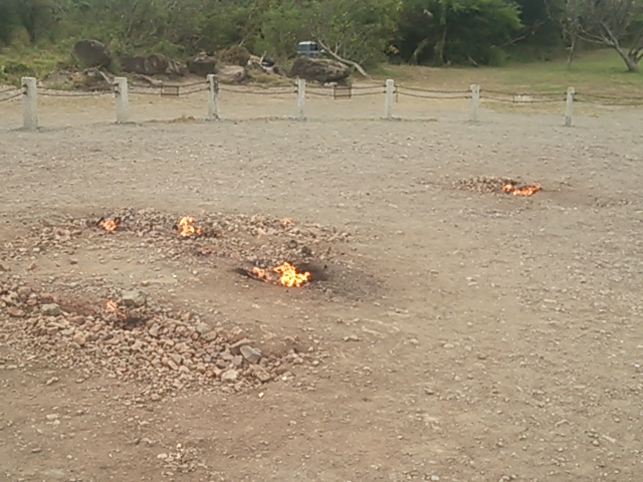 地下から天然ガスが出ていて、それに火がついているので、地面が燃えている様に見える所です。