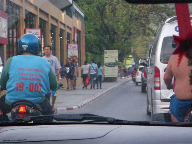 プーケット国際空港からタクシーでパトンのホテルへ。空港から出て右方向の事務所でチケットを購入。ホテルのバウチャーを見せると500バーツとのこと。途中の事務所らしき所で停車。運転者がタクシーから出ていくと入れ替わりで別のスタッフが。観光やマッサージの勧誘です。「すべて予約済みのでノーサンキュー」みたいなことを告げるとアッサリ退散。運転手が戻ってきました。5分のロスでしたが、空港から1時間ほどでホテルに到着しました。