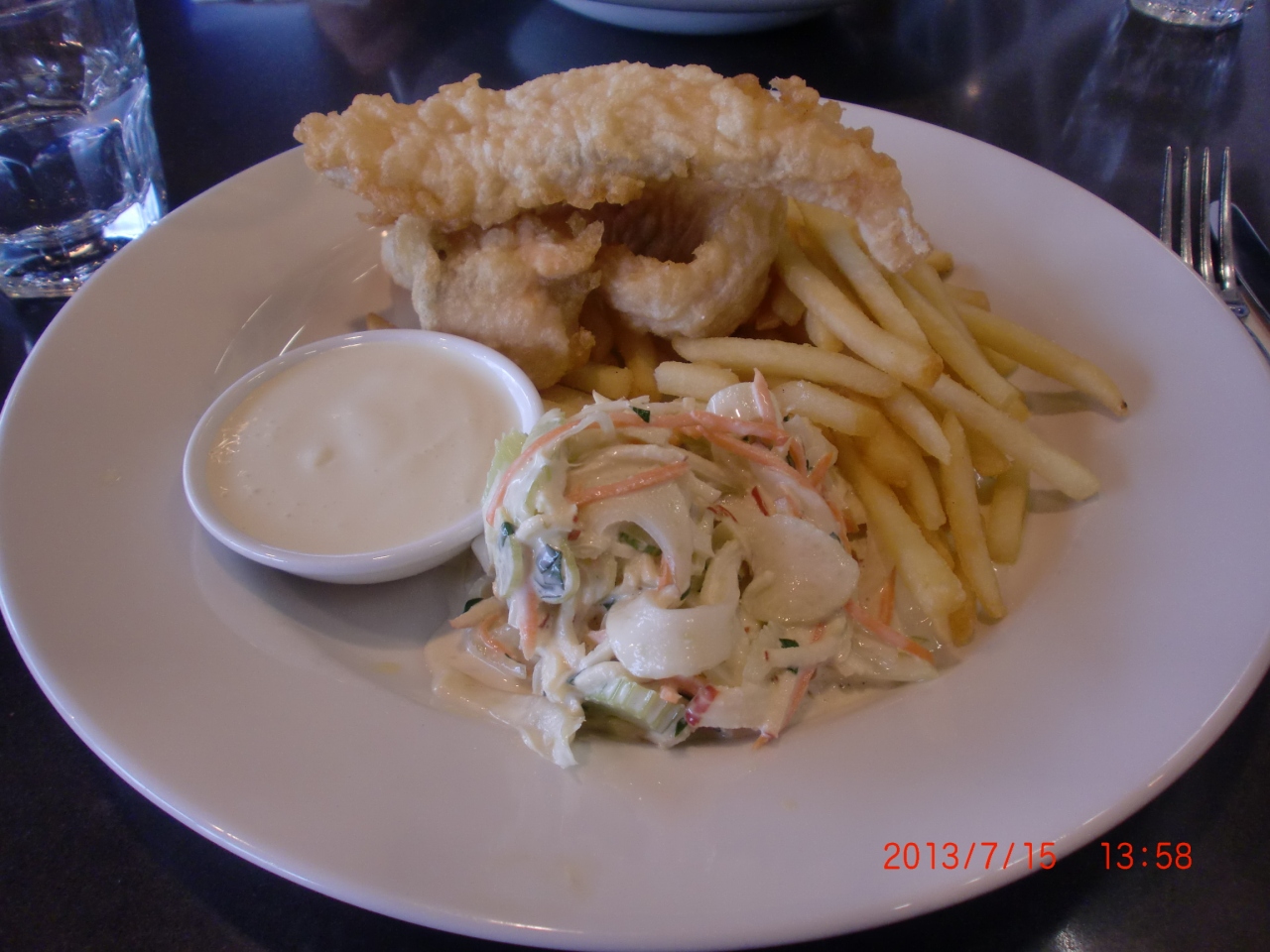 私はサーモンフライとコールスロ添え、連れはサーモンのエスニックなサラダを注文しました。明るくて開放的な店内でした。お味はまあ普通かな。