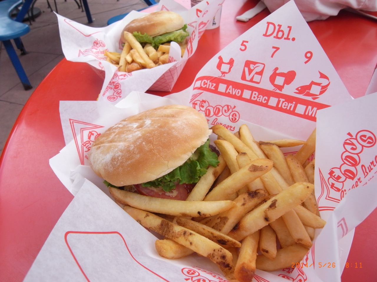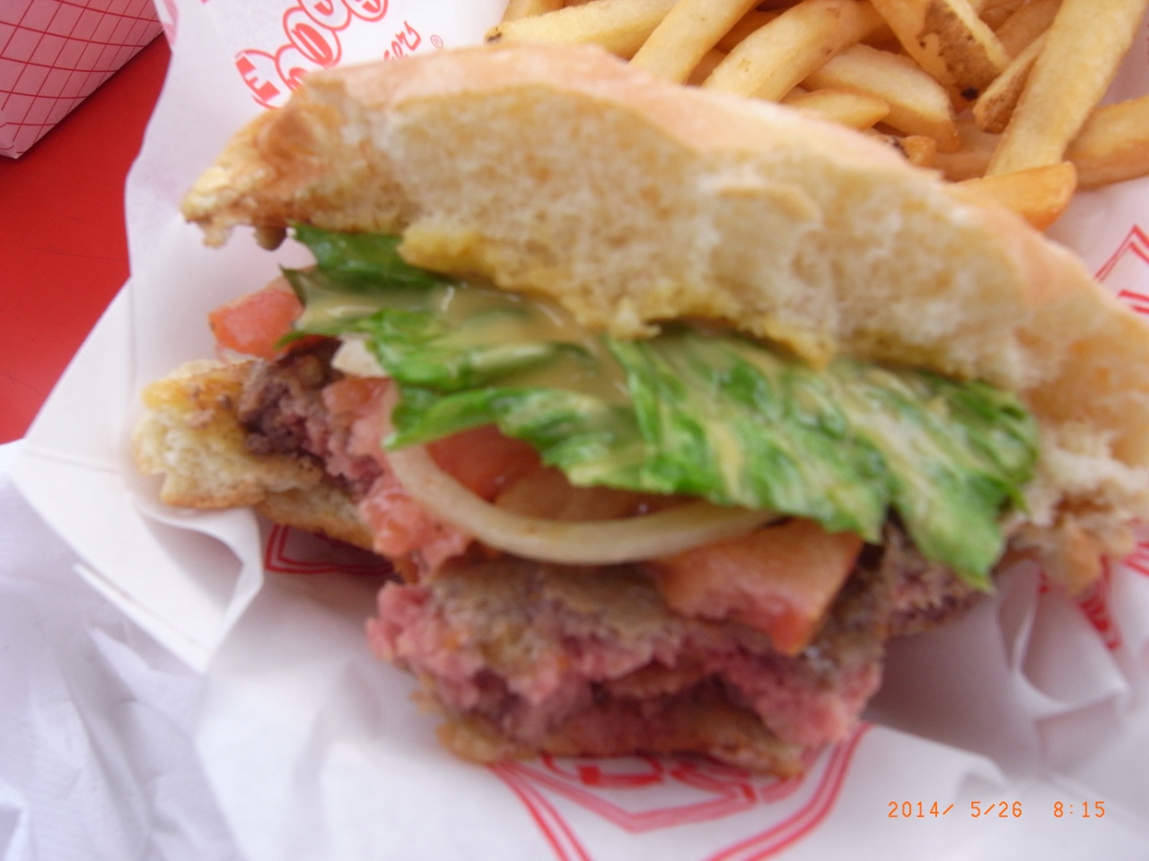 - 超ジューシーなバーガーです。お肉も赤身がのこっていて肉汁で両手べたべた!そんなかんじでした