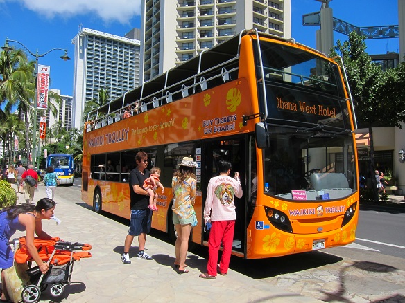 JCBカードの提示で 無料で乗れるピンクラインのみ 毎回渡ハのたびに利用していますが 久しぶりに2階建てのトロリーに乗れ ちょっと嬉しかったです。