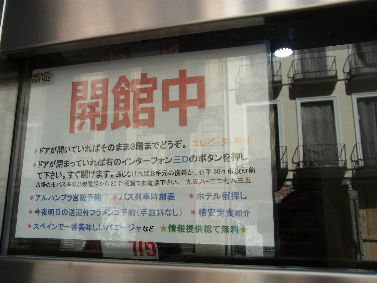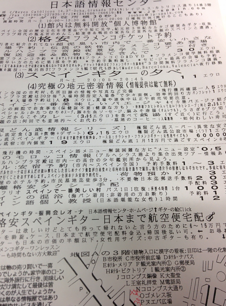 この他にも,フラメンコの予約や,アルプハラ地方などの白い村へのタクシーのチャーター,荷物の預かりなどもやっているそうです.