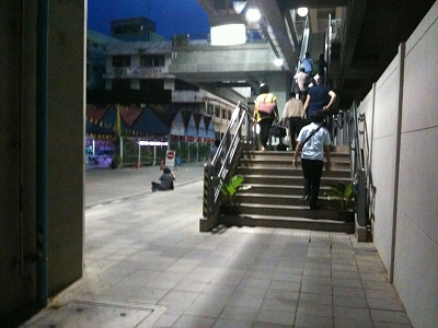 駅に着いたところ、構内にはまだ入れず階段の下で待ちぼうけ。20人ほど集まってきたところで、ゲートオープン。