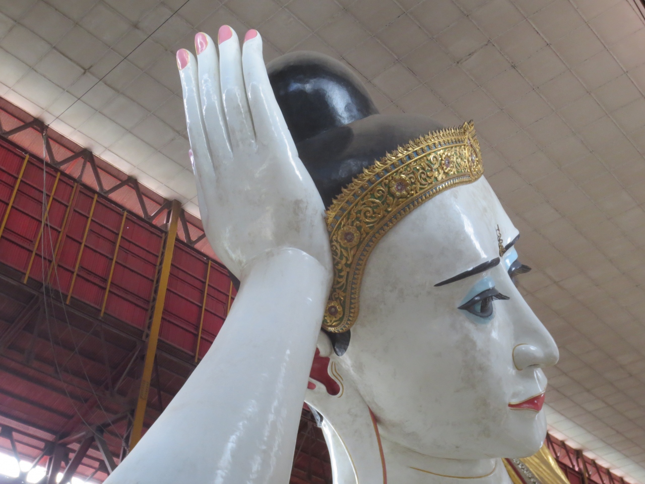 東南アジアではお馴染みの巨大な寝仏様です。タイのそれとは違い、キンピカではなくまるで大理石の様につやつやで、多少漫画チックではありますがこちらの方が親しみやすい印象です