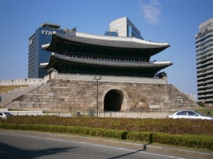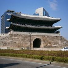 朝早く、南大門市場のカルグクス通りで、カルグクス食べました。アジュマが麺をこねて切るところから目の前で作ってくれるので感動しました。カルグクスはあっさりして汁もコクが効いておしかったです。その後、マンドゥを1個買って、食べながら南大門市場を散歩して南大門を見に行きました。2013年5月に復元された朝の南大門は市民の顔としてどっしり道路の真ん中にありました。