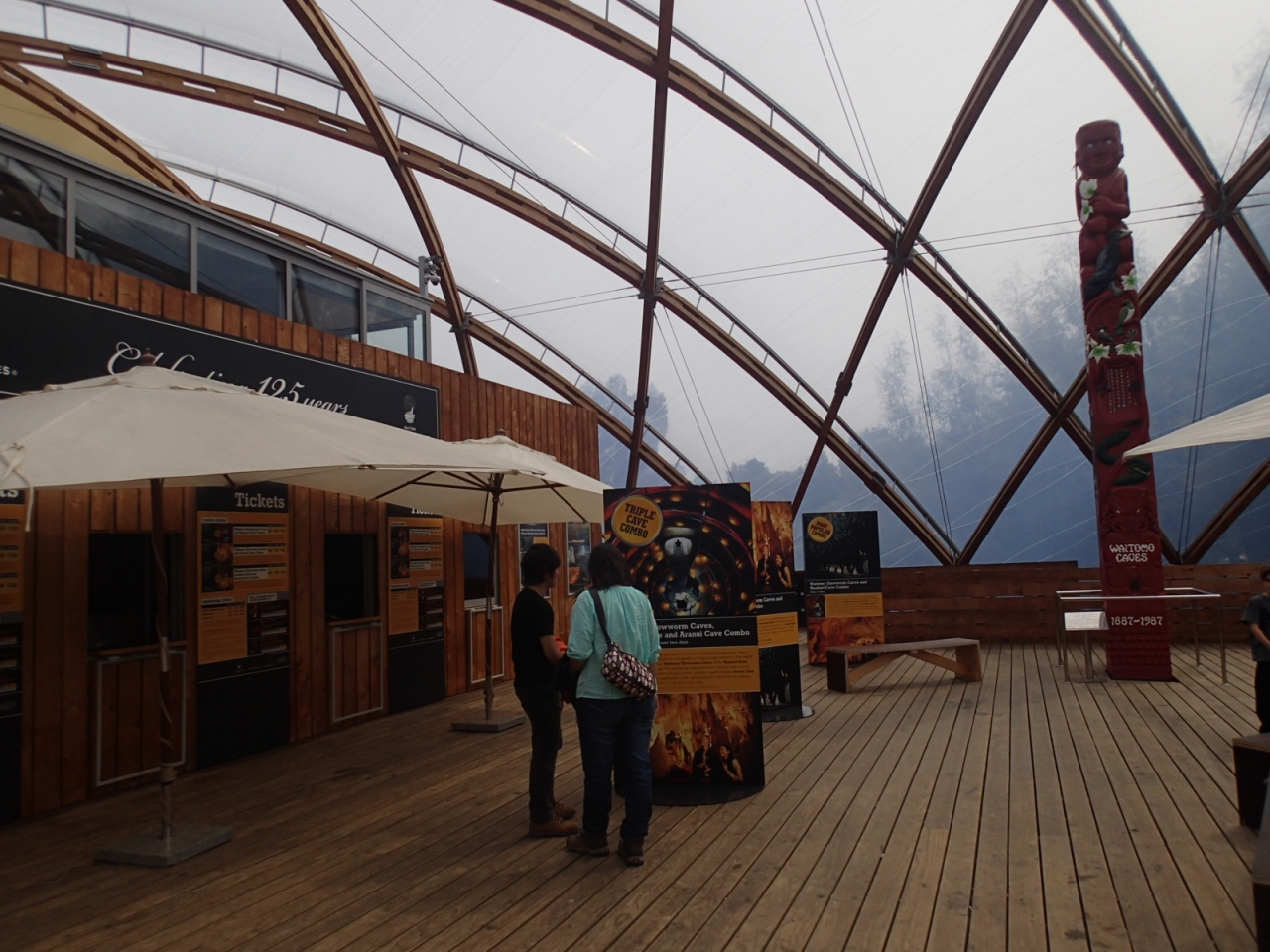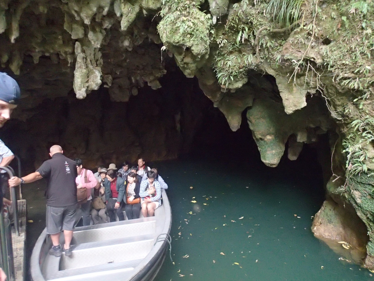 鍾乳洞とその一部がグローワーム ケーブになっており、ボートに乗って見学するようになっています。ボートは2隻あり、天井に張ったワイヤーを船頭が手繰って進みます。天の川を見るように天井一面のグローワームの青白い光は幻想的です。残念なのが、全面的に撮影禁止になっていることです。ストロボを焚かなければ撮影しても差し支えないのでしょうが、発光を止められない観光客も居るのでしょう。