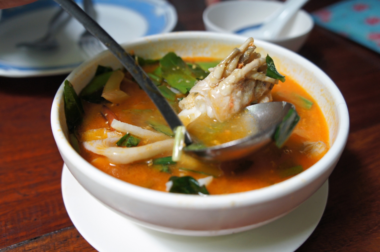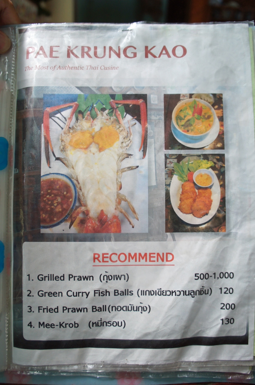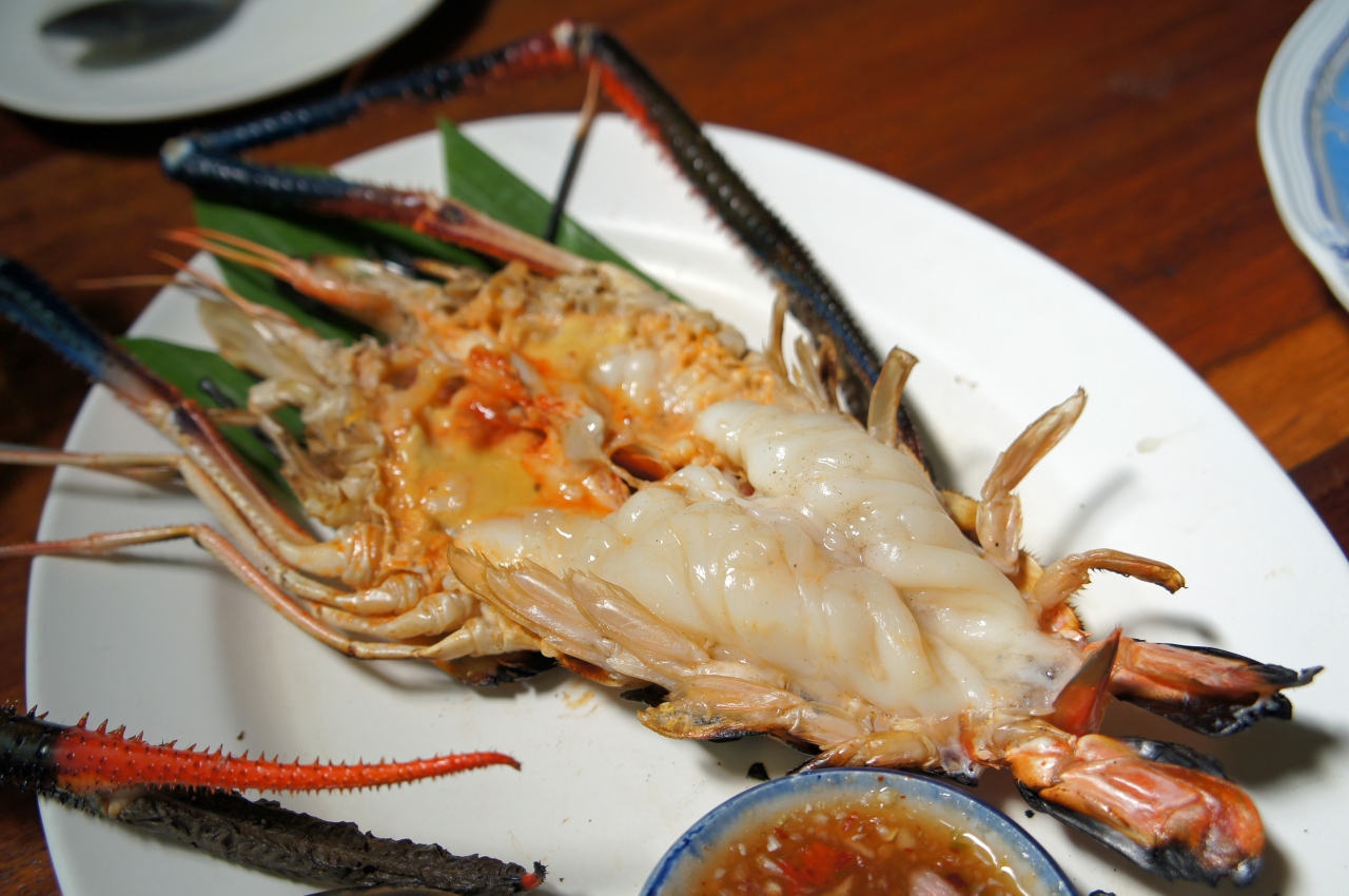 バンコクからタクシーをチャーターしてアユタヤへ行った際にお昼で利用しました。手長エビを名物にしているレストランはいくつかありましたが、第一候補だったこの店に入りました。注文はもちろん手長エビのグリル。一番小さい500バーツのものを2匹ですが、充分大きいものでした。大きさもさることながら、注文が入ってから背割りにしたエビは炭火で焼かれるのですが、絶妙な火の通り具合です。そこはかとなく生に近いのですが、ちゃんと火も入っています。ミソがトロトロで甘く、これは焼き方で美味しくも不味くもなるなと思いました。同じ手長エビを使ったトム・ヤン・クンも美味しかったです。やっぱり手長エビを使っているとスープにミソが溶け込んで得も言われぬ甘さとコクが出ます。他の料理も美味しくて安いので総体としては満足いく内容と値段だと思います。