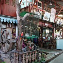 - いくつもの建物が一体になったレストラン。川沿いのテラス席もいいけど、暑いので冷房のある部屋もおすすめ。