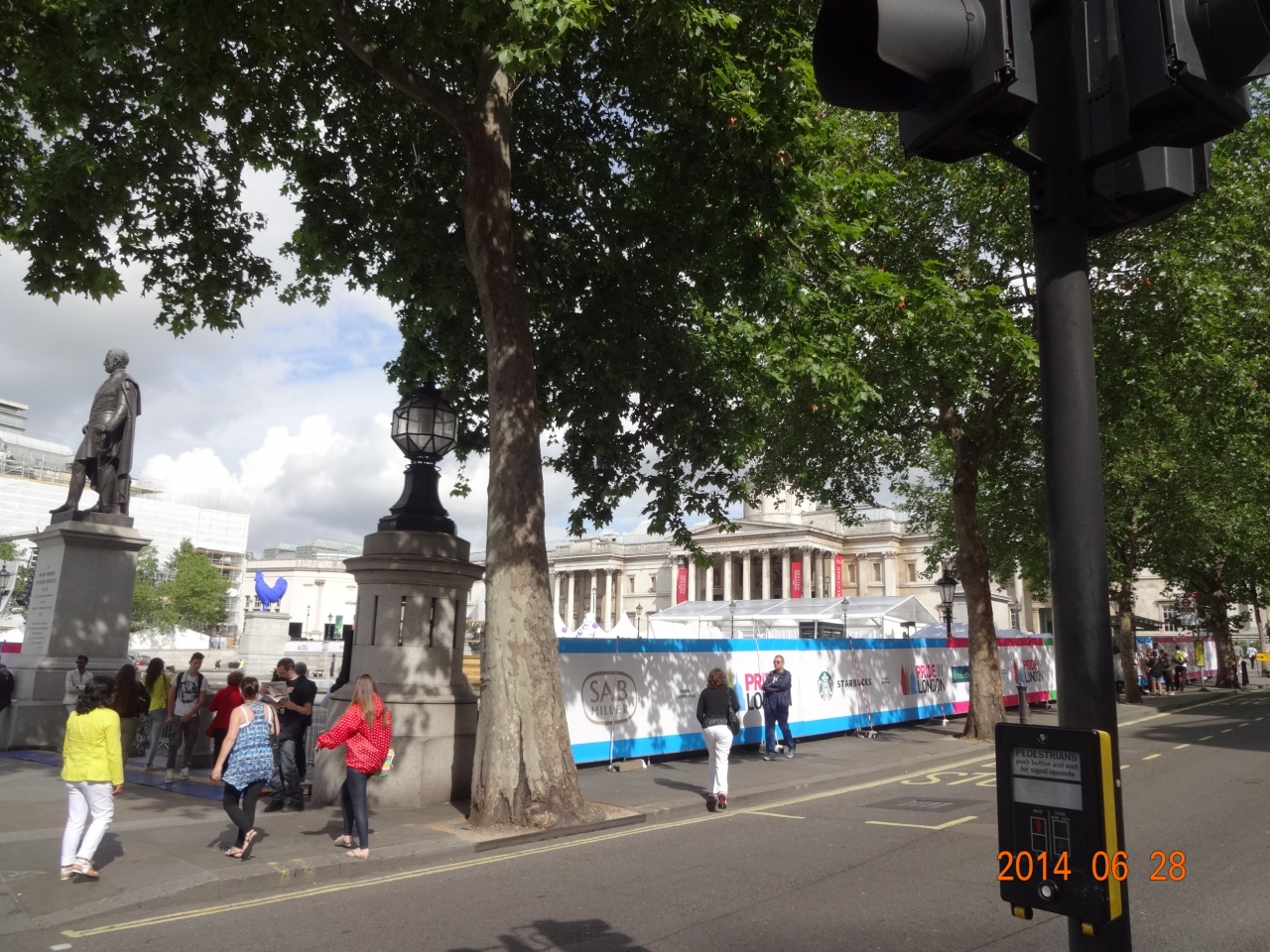 この日はロンドンで「ゲイ・パレード」が行われ、その終結場所が、トラファルガー広場!