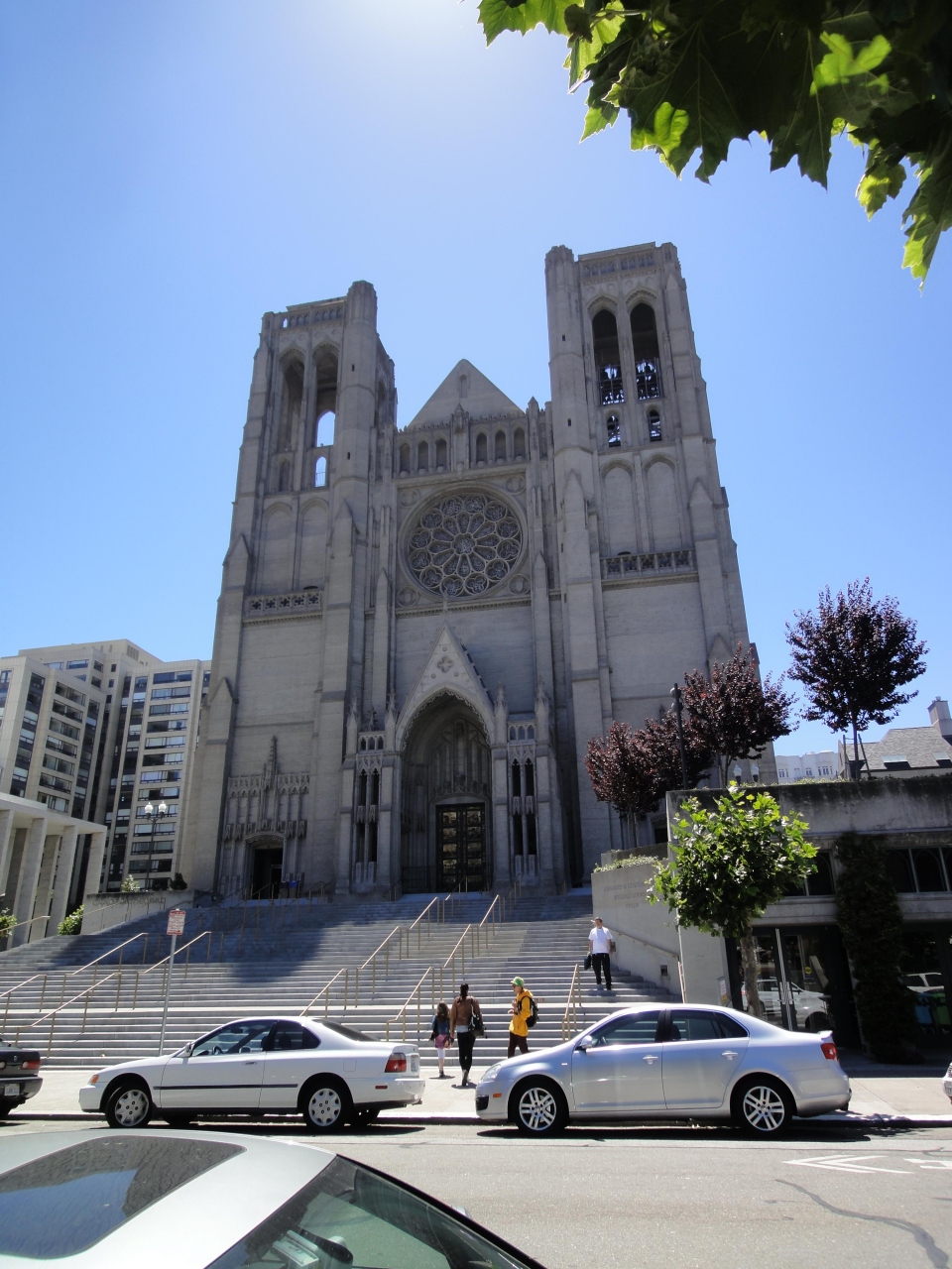 Civic Center から#19バスとケーブルカー(#CALIFORNIA)で15分、ノブヒルの頂上にある、マリリンモンローも式を挙げたといわれているグレース大聖堂に到着。この大聖堂は、ゴシック建築で、外観はとても立派。向かいにはHuntington Park(ハンティントンパーク)もあり、日向ぼっこをしている人がいて、とても幸せそうな雰囲気の流れている場所。しかし、中に入ると、$10/personの寄付が求められた割には、壁画も含め内装はしょぼい。
