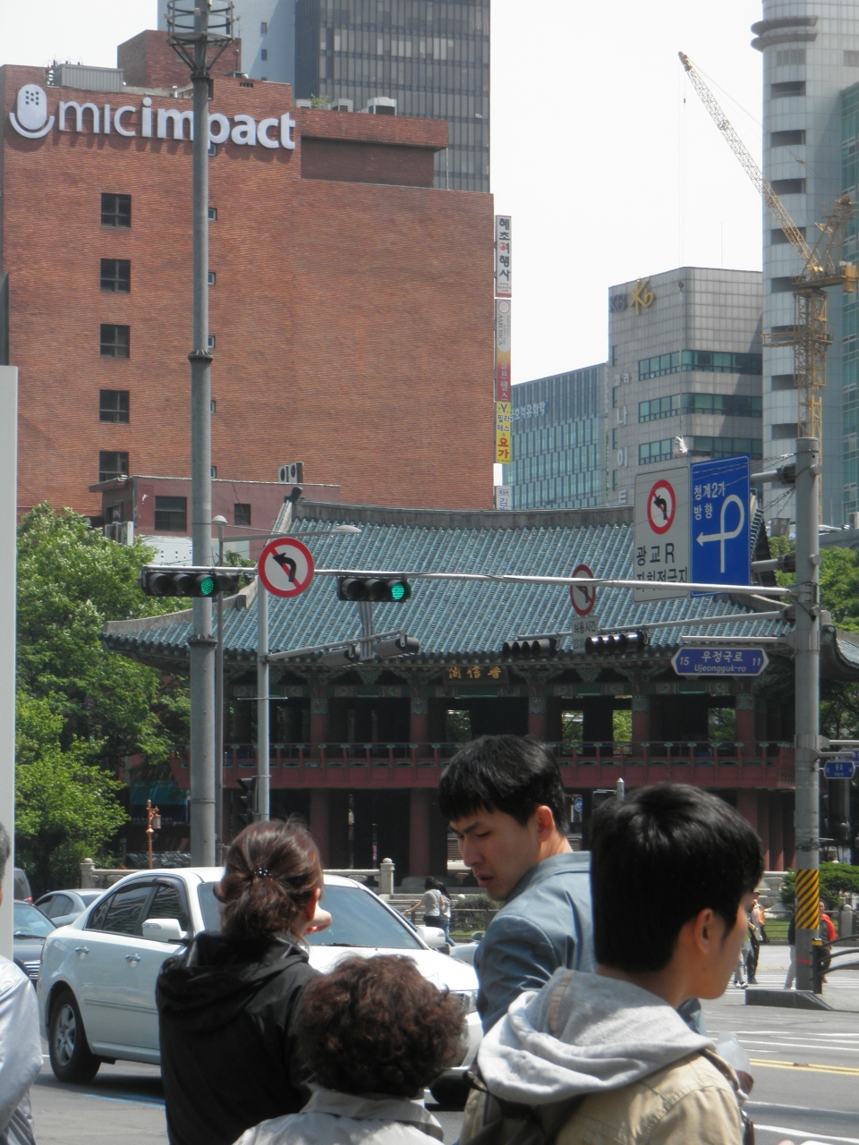 普信閣は、韓国ソウルの地下鉄の鍾閣駅を出ると、十字路の一角にあります。 地下鉄の出口を間違えて、向かい側の駅に出てしまいました。 でもおかげで、現代的な建築物の鍾路タワーと歴史のありそうな普信閣を一緒に見ることができました。 この普信閣は鐘打ちイベントで有名なのだそうです。