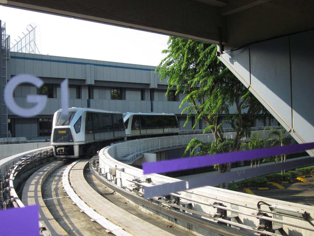 エアアジア利用でクアラルンプールからこの空港に到着。ここにはLCCが発着するバジェットターミナルがあるが、エアアジアは通常のターミナルに発着している。もともとこの路線はMHとSQのドル箱路線でそこにLCCが参入するにあたってもめたらしく、駐機料金の高いメインターミナルに発着することでカタがついたそう。MRT乗り場までの行き方が面倒くさく、空港内移動電車に乗らないと乗り場まで行けなかった。