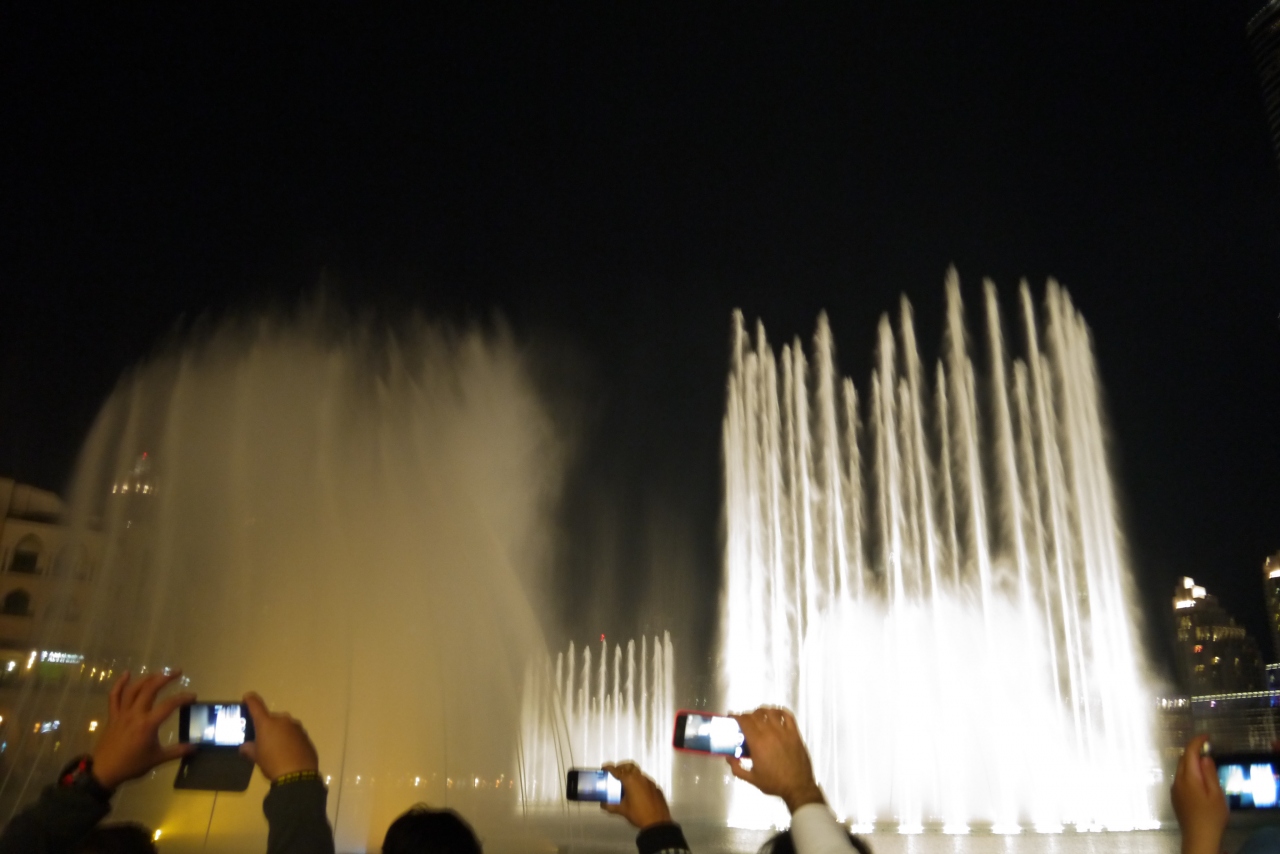 ドバイ・モールのすぐ横の広場で行われる噴水ショー。