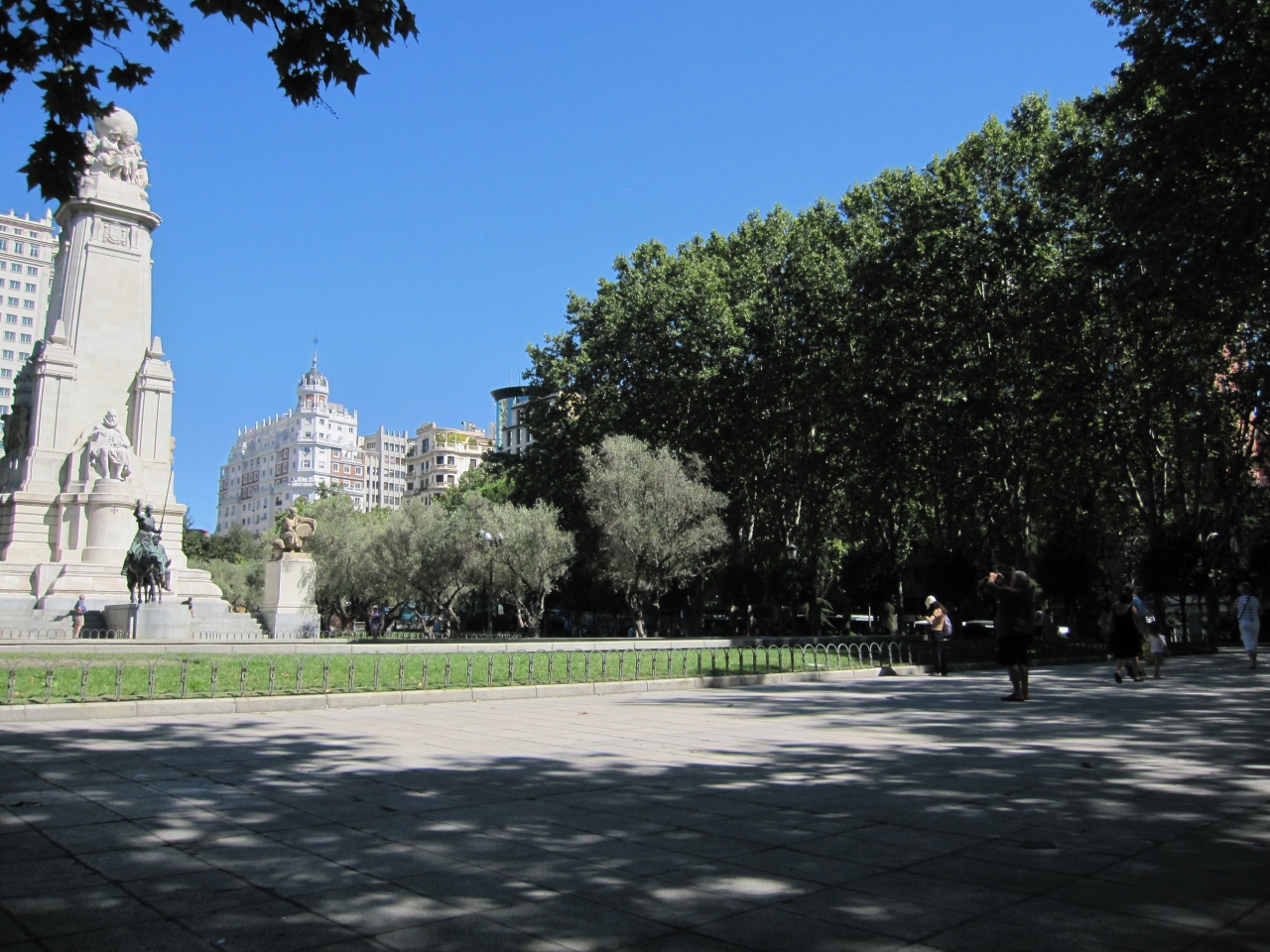 王宮を見学した後に、歩いてスペイン広場まで行きました。緑もけっこうあって広く、ベンチもいくつかあるので、観光中の一休みにも良いと思います。有名なドンキホーテの像があり、写真を撮っている人がたくさんいました!憩いの場だと思います!